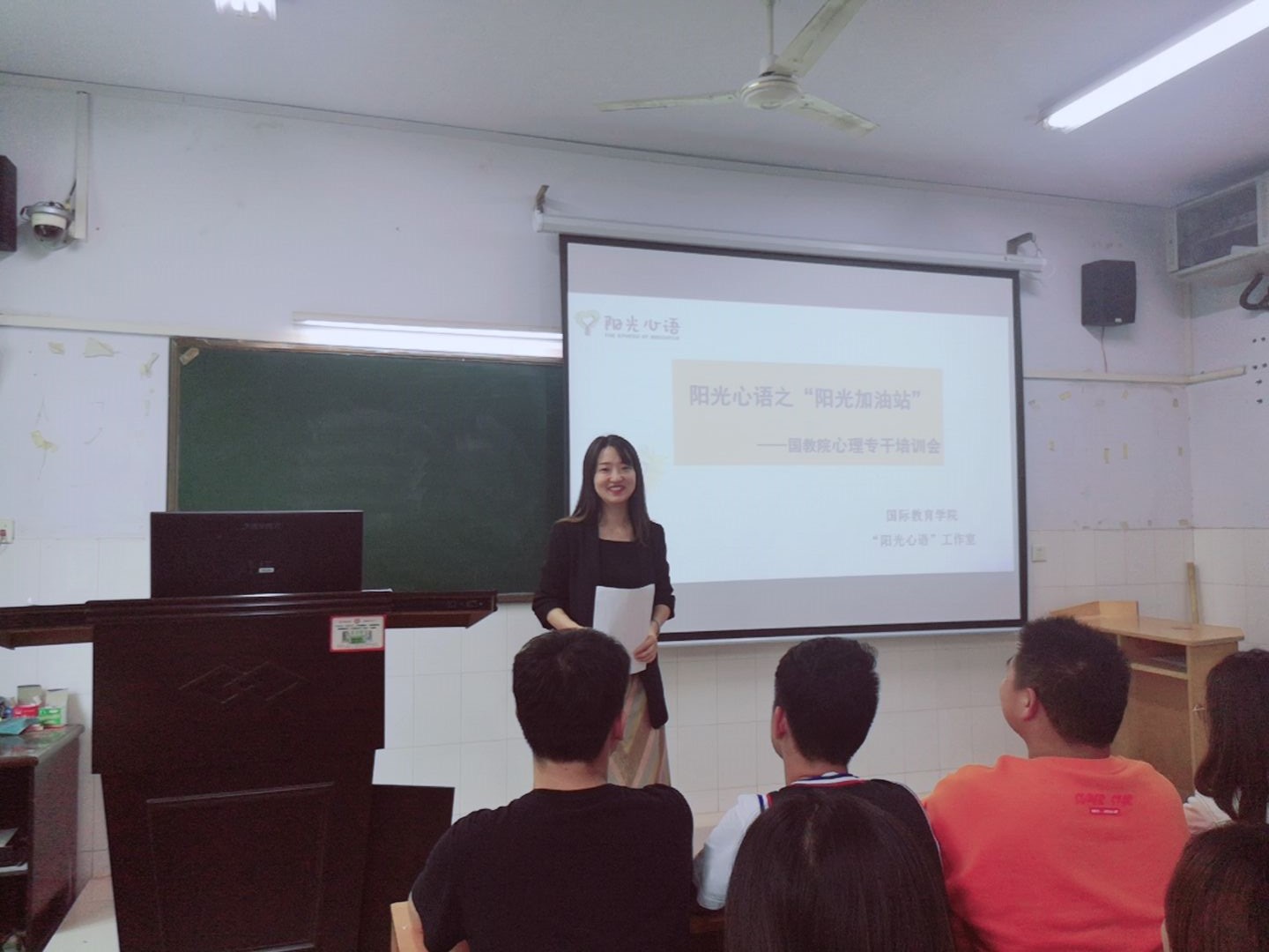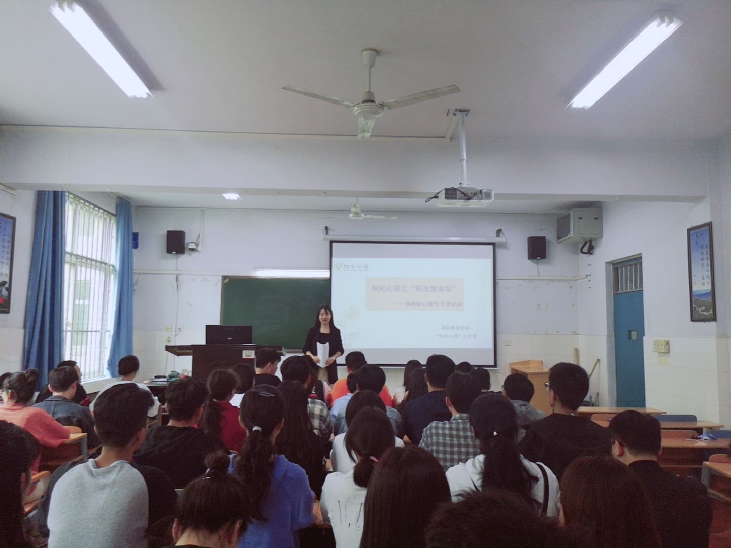 为进一步排查出学生心理问题,买球官方网站于2019年9月19日下午一点半在A207教室开展了--阳光心语之“阳光加油站”心理培训课程,本次会议由心理专干丁玮老师主讲,19级代班长和各班班委参加。
