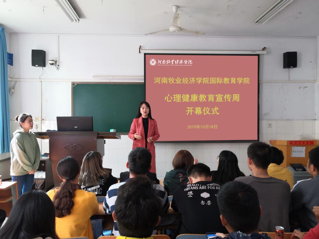 为进一步扎实推进买球官网大学生心理健康教育工作,提高大学生的心理素质,帮助新生快速适应、了解大学生活,明确大学学习的目标和理想,促进大学生的身心健康,宣传普及心理健康知识,深入开展心理健康教育,买球官网于2019年10月17日下午1:30在A203教室开展以“健康青春你我,奉献伟大祖国”主题心理健康周活动开幕式。