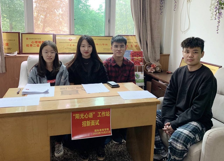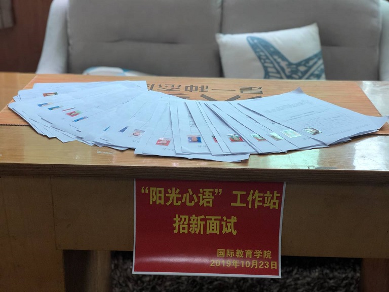 2019年10月23日中午一点买球官方网站“阳光心语”工作站新一轮招新面试活动于行政楼311教室召开。阳光心语工作站站长丁玮老师以及工作站负责人郭猛、李垲熠、李珂均出席了本次面试并担任面试官。本次招新是为了给工作站注入“新鲜血液”,为同学们提供一个更广阔的学习空间,一个了解并热爱上心理的平台。