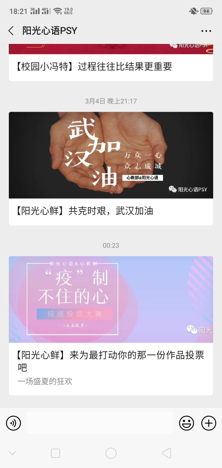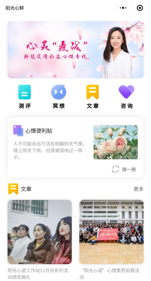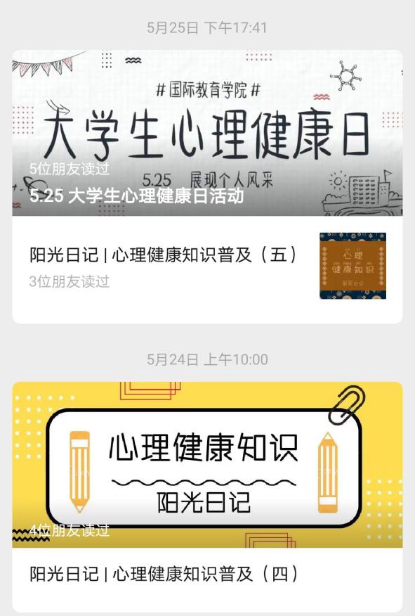 “525大学生心理健康月”期间,我们充分利用了线上技术资源。买球官方网站阳光心语工作站首当其冲,进行了爱心帮扶线上心理问卷调查,问卷内容由买球官网心理专干丁玮老师亲自设计,问卷涵盖了家庭经济情况普查、家庭关系情况普查、自身心理情况变化调查等几方面的内容,通过本问卷调查可全面并真实的了解到同学们近期的心理变化。同时我们建立了“阳光心鲜”小程序,开通了与国教院心理专干丁玮老师的对话直通车,对国教院全体学生开放,存在心理疑惑的同学都可以进行专业的心理辅导。丁玮老师为国家二级心理咨询师,从业八年,拥有丰富的实战经验,咨询风格亲和温润,共情能力一流。同时为了让同学们更好的认识此次肺炎疫情,迎接抗疫收官之战,保护自身安全,买球官方网站在官方微信公众号上发布了由心教部携手阳光心语工作站共同创作的“防疫正当时”抗疫视频,宣传防护知识,对疫情期间存在的误解和不实信息进行讲解,缓解同学们的紧张情绪。与此同时,为期五天的“阳光日记”专题心理健康知识推送与战“疫”知识大挑战心理健康知识竞赛也在紧锣密鼓的进行,本次微信公众号“组合拳”宣传教育效果显著,达到了普及相关心理健康科学知识,帮助学生提高自身的心理调适能力和目标。