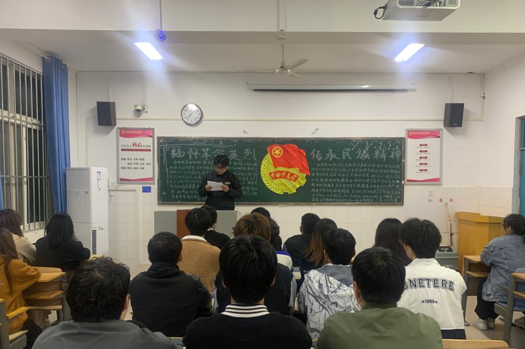 为引导学生关注缅怀革命英烈,传承民族精神,鼓励学生积极参与校园志愿服务活动。买球官方网站于3月31日晚上开展“缅怀革命英烈,传承民族精神”为主题的团课。本次团课由21国教会计(专03班、21国教大数据(专)01班、21国教大数据(专)02班、21国教大数据(专)03班、21国教物流(专)01班、21国教物流(专)02班共六个班级参与。