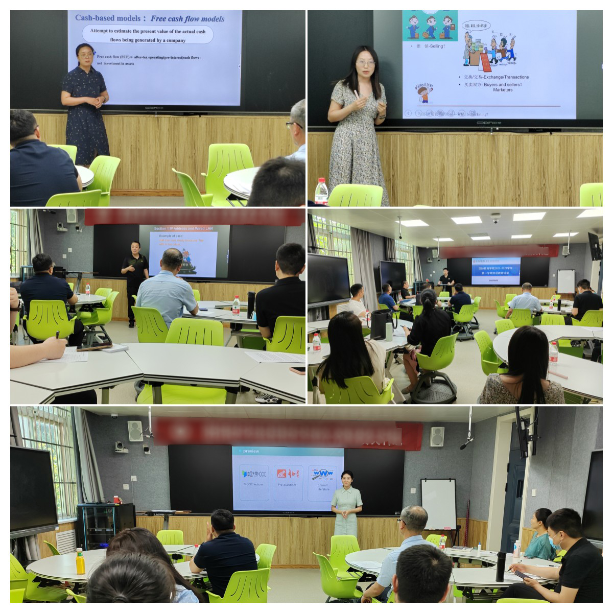 本次试讲共有10名初次担任双语教学任务老师参与,涉及课程有《Financial Reporting》、《Managment Accounting》、《Advanced Financial Managment》、《Taxation》、市场营销学原理(外方)等8门课程。10位老师在讲授课程的过程中,能够熟练的进行中英文语言切换,对多讲的内容熟练掌握,展现出良好的教学素养和专业素质,得到了评委老师的肯定。