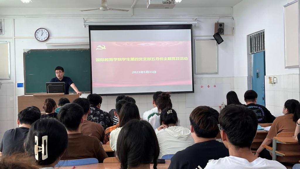 5月31日中午,买球官方网站学生第四党支部在英才校区A305教室开展5月份主题党日活动。党支部全体党员参加会议,会议由党支部书记何季霖主持。