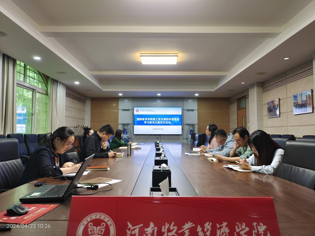 4月23日,买球官方网站教工党支部以“深入学习中国共产党纪律处分条例”为主题,在英才校区教学办公楼113党员活动室召开4月份主题党日活动,会议由教工党支部书记李江红主持。