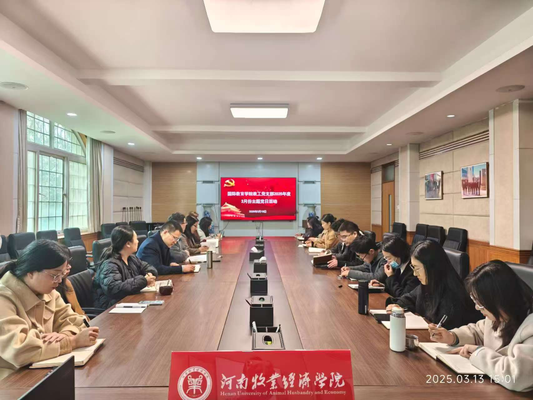 3月13日下午,买球官方网站教工党支部在学院113会议室召开2025年度3月份主题党日活动,支部书记李江红主持会议,支部全体党员参加会议。