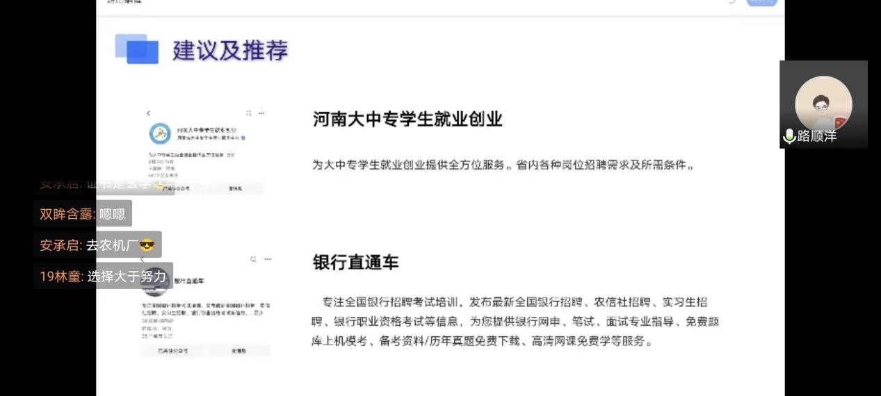 按照学院2022级新生入学教育安排,9月14日,买球官方网站组织2022级新生开展了线上优秀校友谈学业生涯规划专题讲座。本次讲座由辅导员滑斌老师主持,优秀校友路顺洋主讲。