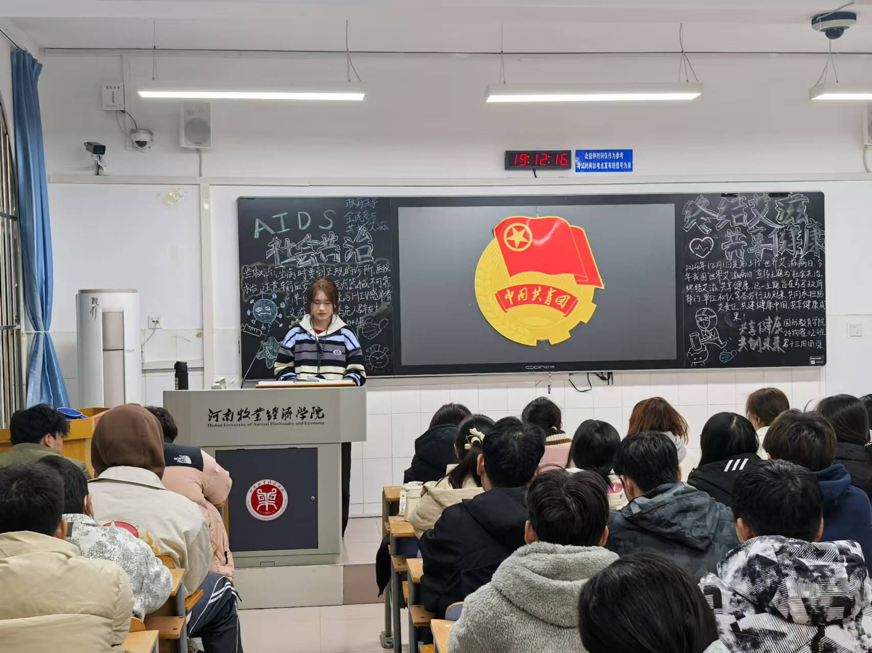团课伊始,各班团支书通过一组组触目惊心的艾滋病相关数据,引起同学们的高度关注与警觉。随后,通过播放艾滋病防治科普视频,同学们直观地了解艾滋病的致病原理、传播途径以及对个人、家庭和社会的严重危害,加深了同学们的认识和理解。最后,各班团支书组织同学们针对防艾展开热烈讨论,同学们也纷纷表示将以实际行动践行“终结艾滋,共享健康”的目标,从自身做起,向身边同学、朋友传递防艾知识,为营造健康、和谐、包容的社会环境贡献自己的力量。
