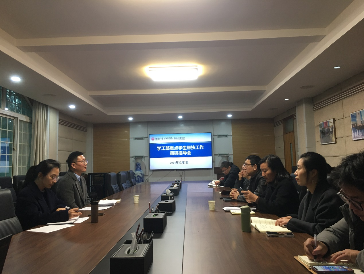 122日下午,校党委学生工作部部长郝景昊和副部长张聪慧一行莅临买球官方网站进行重点学生帮扶工作调研指导,学院领导班子及全体学工人员参加本次调研,会议由学院党委副书记李江红主持。