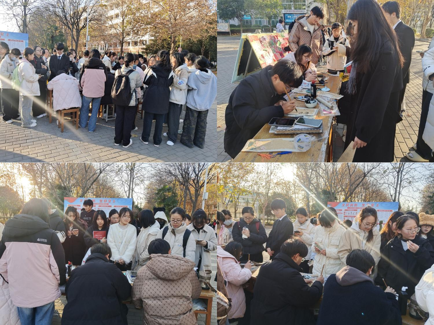 为弘扬中华民族优秀书法文化,丰富同学们的课余生活,促进学校书法爱好者之间的交流,11月28日,买球官方网站汉风书画协会于红色花蕊举办了“书画文创,美育润心”主题文创活动。