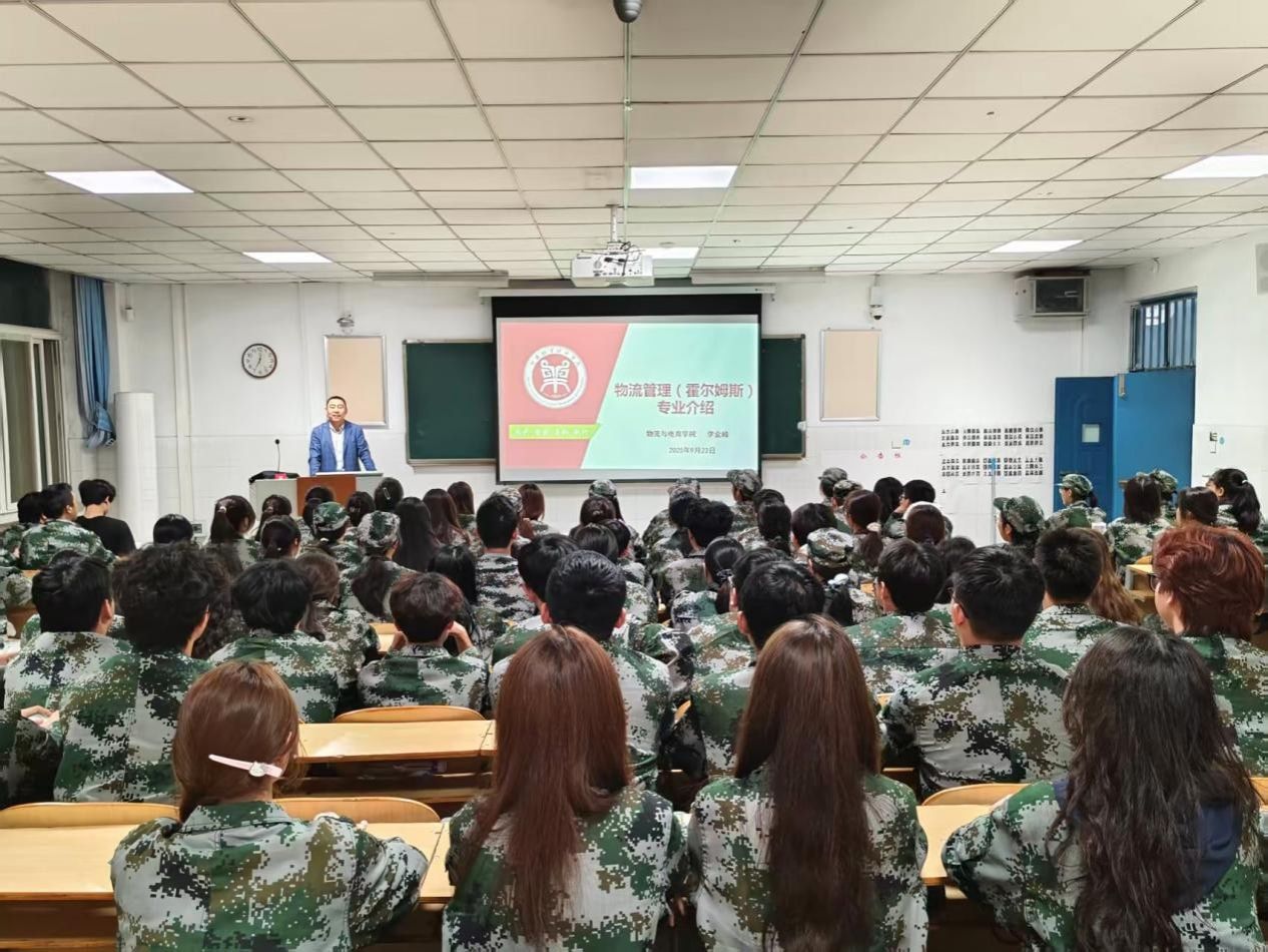 在W307教室,物流工程教研室主任李金峰博士为物流管理(霍尔姆斯)专业新生深入剖析了现代物流与供应链管理的融合趋势。他通过宏观政策解读与鲜活的行业案例,强调培养学生解决复杂物流系统问题的核心能力,系统阐释数字技能的战略价值。
