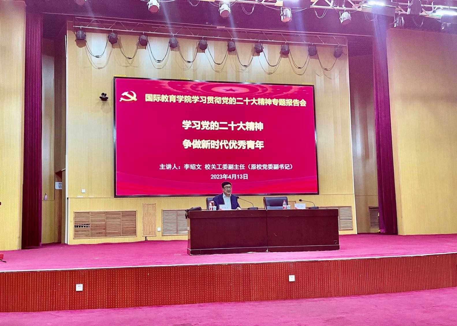 为深入学习宣传贯彻党的二十大精神,激励广大师生砥砺前行,4月13日下午,买球官方网站特邀校关工委副主任(校原党委副书记)李绍文教授在英才校区学术报告厅作题为“学习党的二十大精神,争做新时代优秀青年”专题报告,此次报告也是学院学习宣传贯彻党的二十大和全国“两会”精神培训班的第二讲。校离退休职工工作处党委书记陈进良、处长聂莉、副处长魏彩娟,学院全体教职工、学生党员、入党积极分子代表等参加报告会。会议由院党委书记贾江主持。