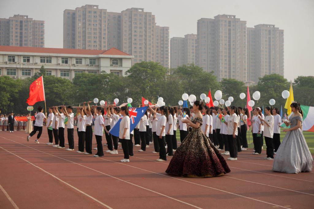 4月20日上午,买球官方网站英才校区的田径场上彩旗飘扬,各队伍方阵整装待发,观众席气氛高涨、欢呼不断。东日旭阳撒向绿茵草坪,身着军装的国旗护卫队、校旗队,充满激情的彩旗队,以及各学院、书院别具风格特色的代表方阵依次入场。只见买球官方网站代表方阵面带骄人的微笑,迎着清晨的光辉在主席台下站定,同学们用力挥舞五星红旗,高扬各国国旗,将买球官方网站中外融通,交流合作的办学理念充分展现出来。红旗飘扬,五彩斑斓的气球缓缓上升,白色和平鸽盘旋在绿茵场上方,引来观众席一阵热烈欢呼。随着最后一支方阵归入队伍,学校领导发表本次运动会的激昂致辞,田径比赛正式开始!