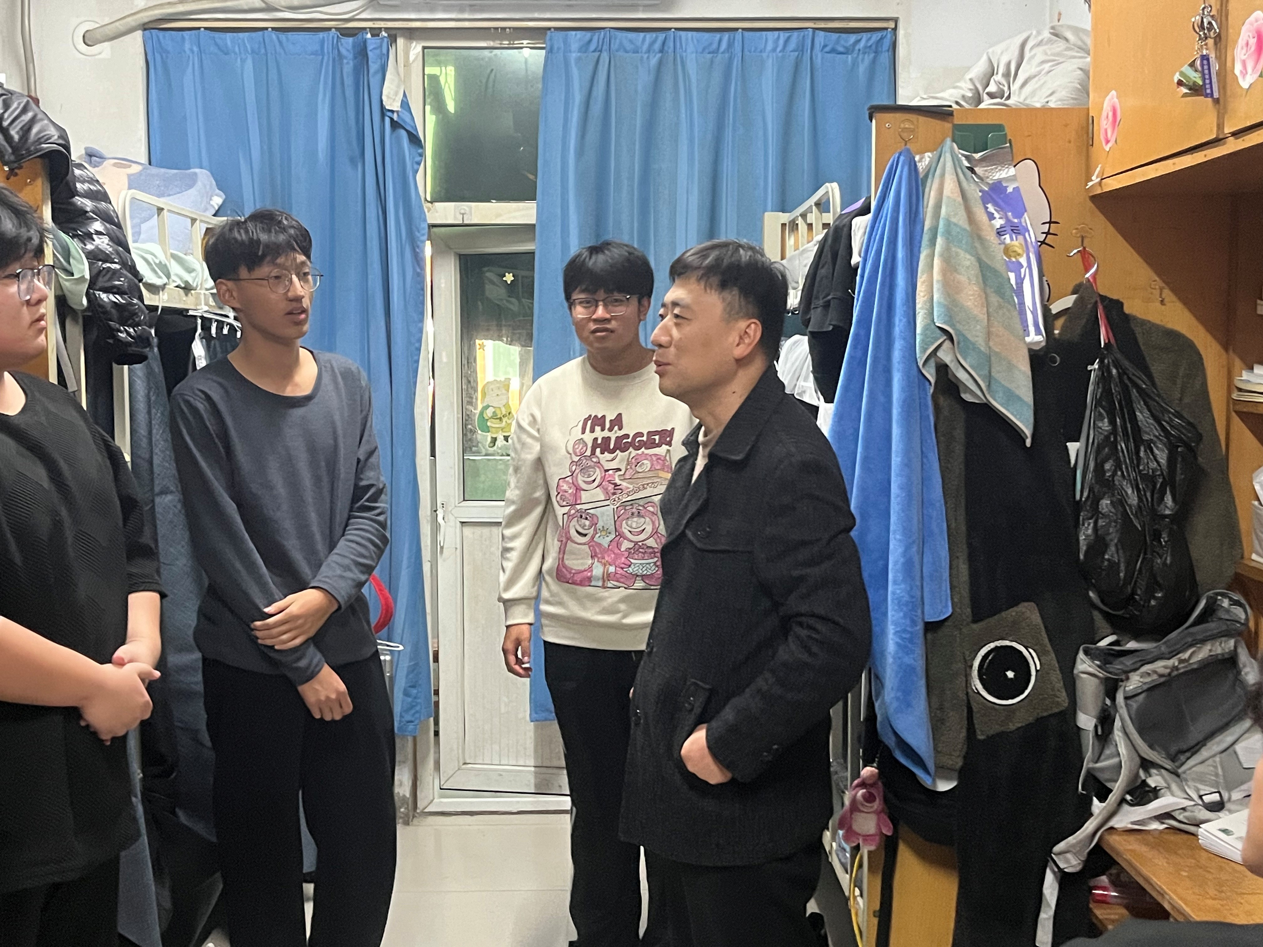 在走访过程中,汪晓伟与同学们亲切交流,认真听取了同学们的意见和建议,亲切地询问大家生活需求,耐心解答同学们在学习生活中遇到的问题。在新生宿舍,他勉励2025级新生要从入学之初就详细了解专业人才培养方案,做好个人职业规划;要努力夯实专业基础,积极参加各类实践项目和校园活动,全面提升个人综合素质。在毕业生宿舍,他详细了解了同学们的就业去向及考公考研准备情况,并就当前就业形势与同学们进行探讨,鼓励大家要树立科学理性的就业观,做好职业规划,主动参加校内外举办的招聘会,积极投递简历,争取更多的就业机会。