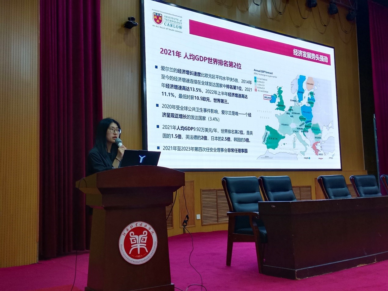 为进一步宣传买球官方网站中外合作办学项目,促使学生深入了解爱尔兰文化,10月19日下午,买球官方网站在学术报告厅开展了爱尔兰交流学习分享会,分享会由买球官方网站新生辅导员尚珂、黄艳丹主持,全体2023级新生参加了本次分享会。