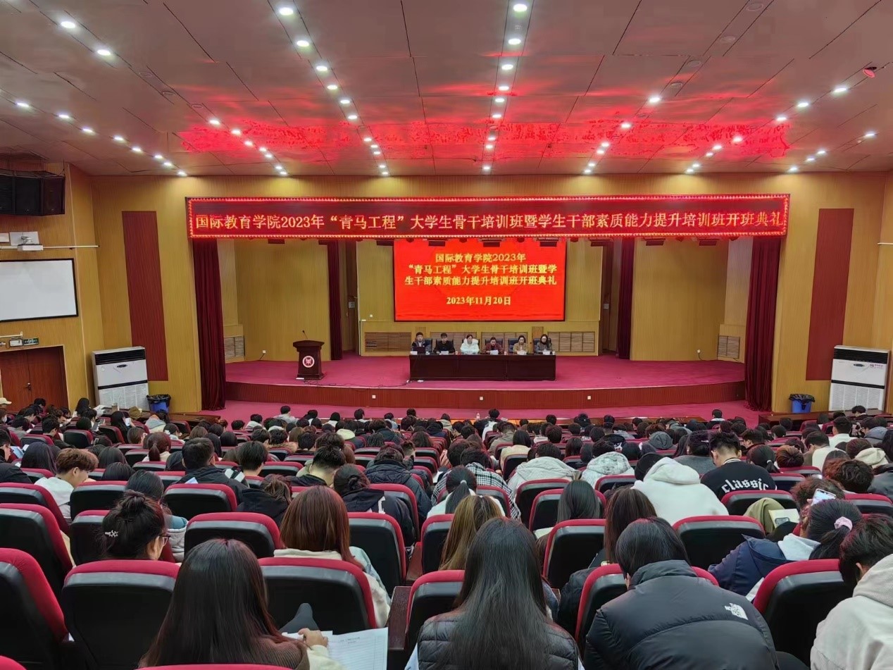 2023年11月20日,买球官网“青马工程”大学生骨干培训班暨学生干部素质能力提升培训班在学术报告厅举行。院党委副书记李江红,院团委书记张丽,院团委副书记侯丁琳、何季霖,辅导员滑斌、侯思琦,院“青马工程” 学员和全体学生干部参加了开班典礼,典礼由何季霖主持。