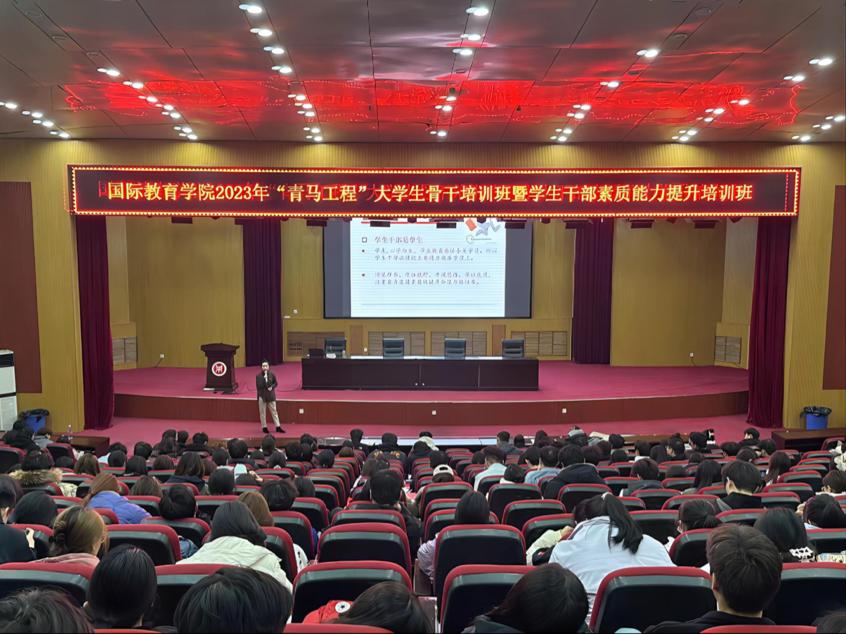 11月24日中午13点,买球官网“青马工程”大学生骨干培训班暨学生干部素质能力提升培训班第六讲—《学生干部角色定位与转换》专题报告在学术报告厅举行。本次报告由院团委副书记侯丁琳老师担任主讲,全体学生干部参加了本次培训。