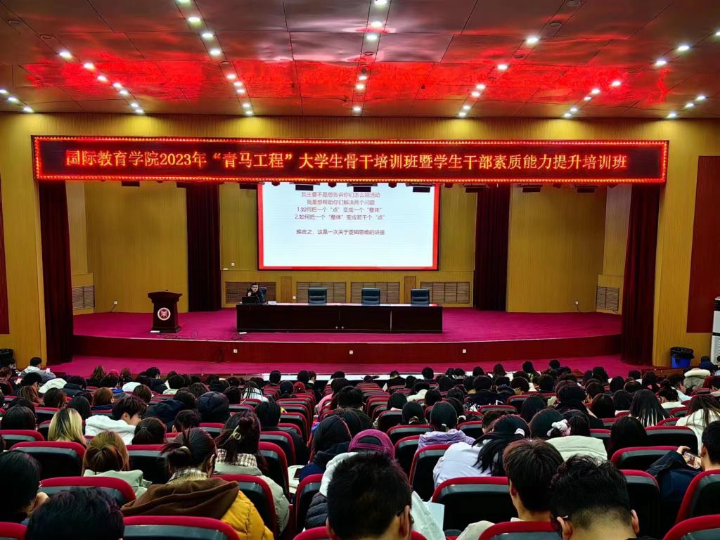 11月27日中午,买球官方网站“青马工程”大学生骨干培训班暨学生干部素质能力提升培训班第七讲——《如何策划、组织、开展高水平的团学活动》专题报告在英才校区学术报告厅举行。此次培训由学院团委副书记何季霖主讲,学院青马学员、团学会学生干部和23级各班班委参加了本次培训。