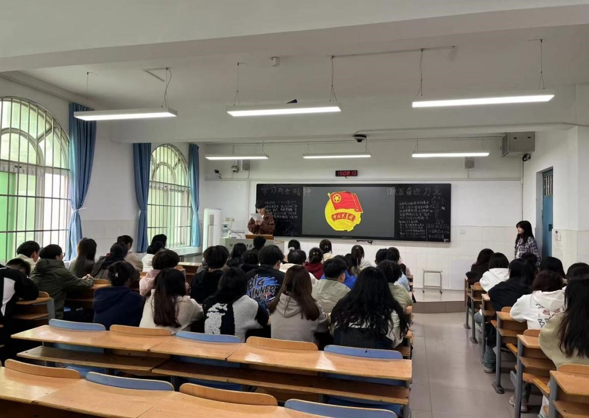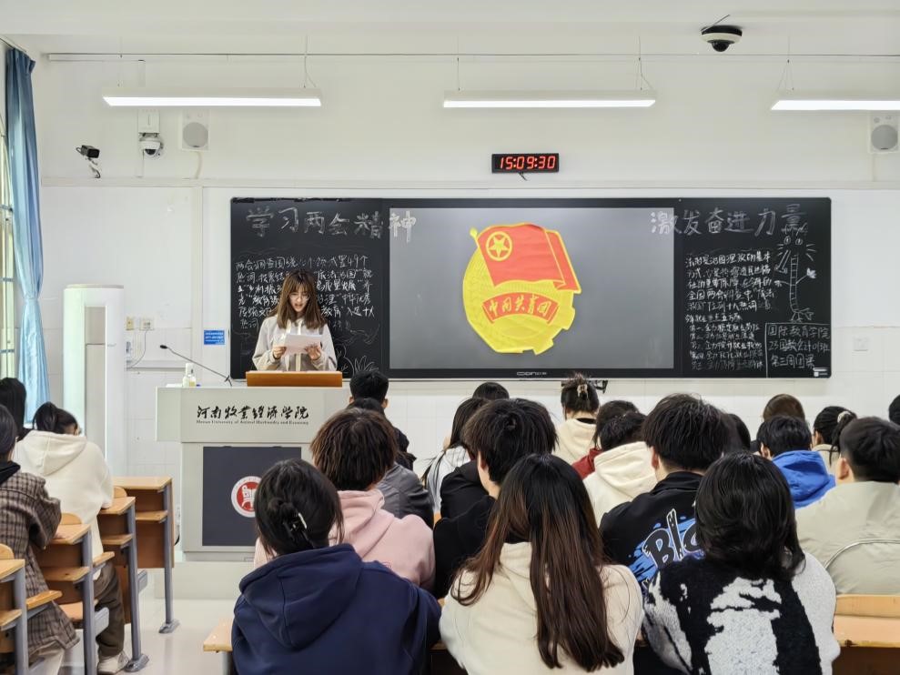 为深入学习贯彻全国“两会”精神,教育引导青年用实际行动学习贯彻“两会”精神,争做有理想、敢担当、能吃苦、肯奋斗的新时代青年,买球官方网站于3月14日在教室开展“学习两会精神,激发奋进力量”主题团课。