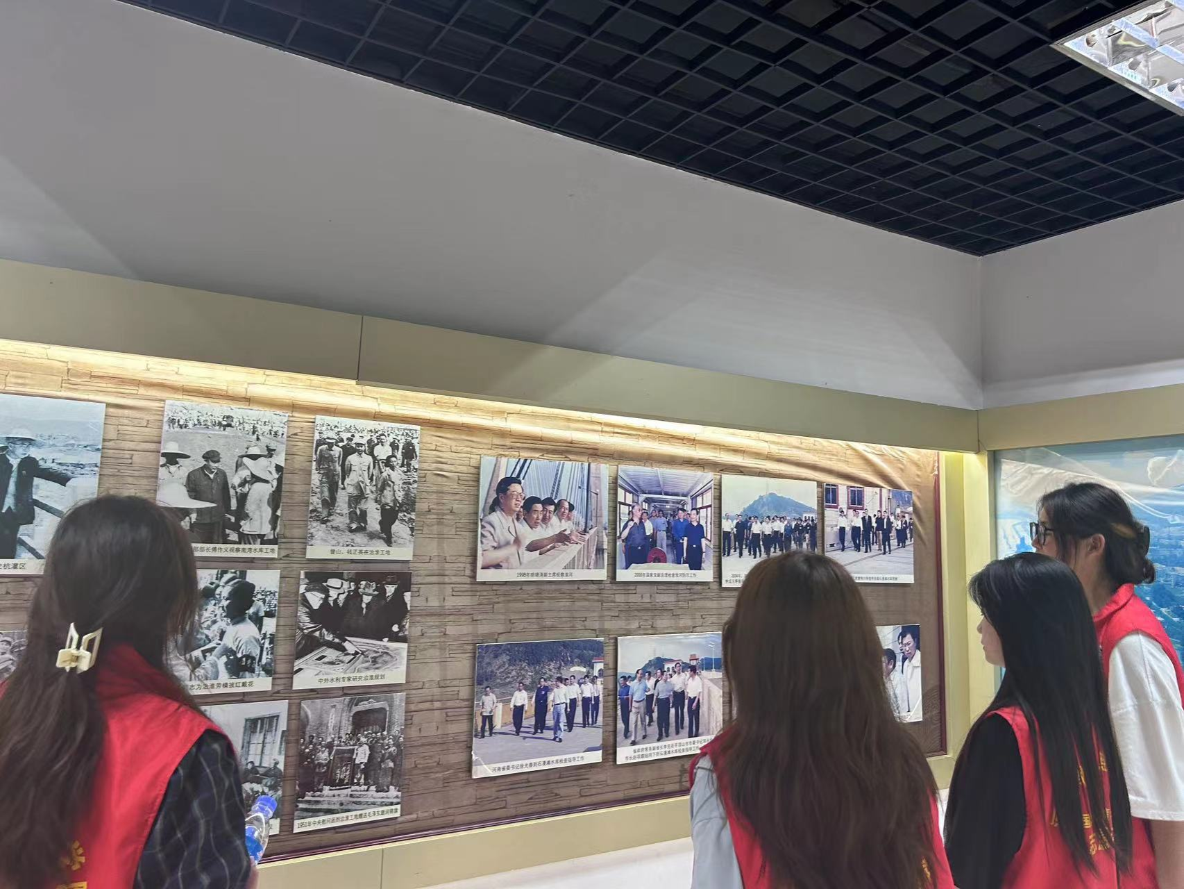 团队成员在大坝工作人员的带领下参观了在大坝边的水利展览纪念馆,第一展区通过翔实的图片和文字资料展现了75·8大洪灾发生的过程及其灾难性的影响,看到了大洪灾时的图片影像和文字纪录,看到了惨痛的历史教训,第二展区展示了建国以来国家领导人对水利事业的关怀,对人民能够幸福生活的殷切希望。第三展区则展示了新建的石漫滩水库的新风貌。从1951年的初建到19788月的洪灾再到1993年的复建,实践队员感受到了在面对自然灾害时中华人民的顽强不屈,和一定要搞好国家水利建设的决心和顽强奋斗的革命精神。