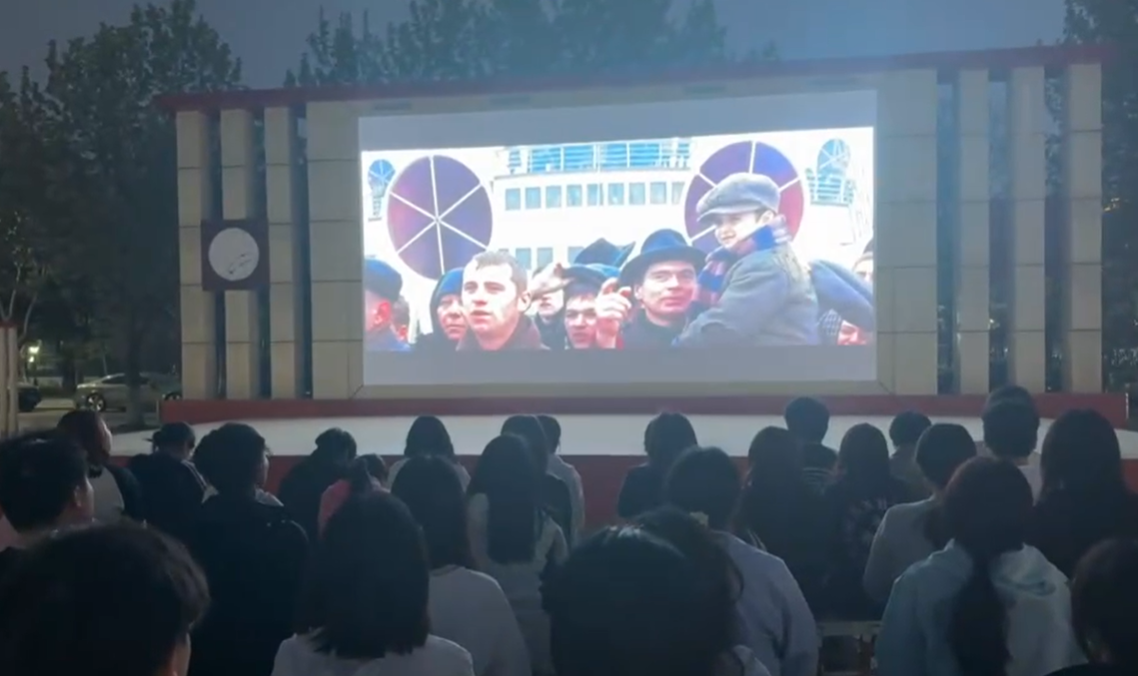 本次观影活动精心挑选了《海上钢琴师》、《美丽人生》、《放牛班的春天》和《触不可及》等4部优秀影片,这些影片题材丰富、视角多元,展现了世界各地的风光旖旎、人文荟萃、历史深邃与文化多元,具有很强的思想性、艺术性和感染力。美食广场上灯火辉煌,大屏幕前人头攒动,同学们围坐小板凳或站立一旁,共同期待着这场视觉与文化的盛宴。夜幕降临,经典影片逐一亮相,同学们被影片中的美丽风光、人物形象、故事情节和视觉效果所吸引,时而欢笑连连,时而默默沉思,学生们跟着电影去旅行,身临其境般的感受他国的自然风光和人文情怀,认真领悟一个国家、一个民族、一个时代的文化特征和文化发展。