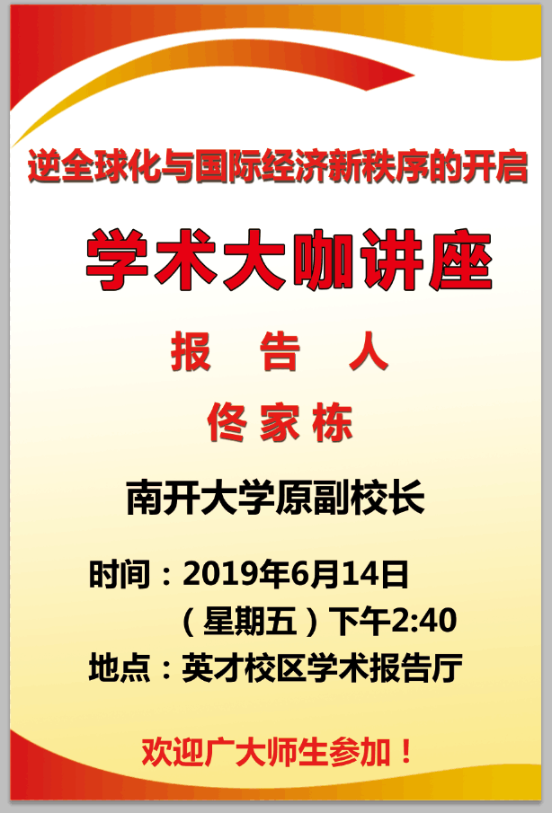 为营造良好的科研学术氛围,更深刻地理解中美贸易摩擦对国际经济秩序的影响,特邀原南开大学副校长佟家栋教授来买球官网作专题报告。具体通知如下: