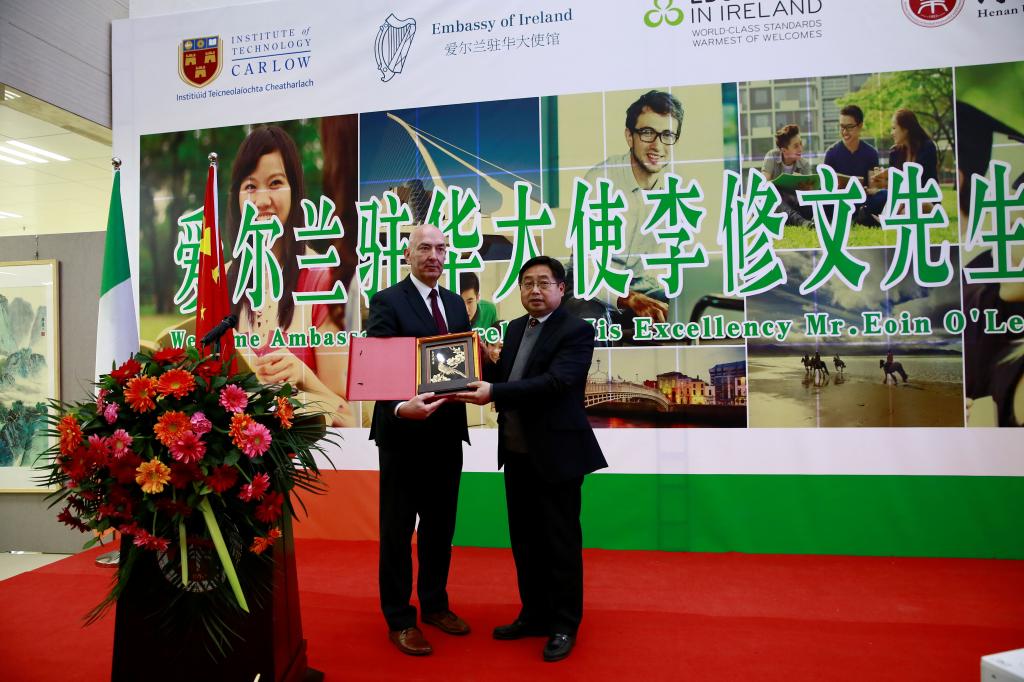 1121日,买球官网举行爱尔兰研究中心揭牌仪式暨买球官网与爱尔兰卡罗理工学院签约仪式,副省长徐济超、爱尔兰驻华大使李修文、爱尔兰卡罗理工学院副校长戴克澜•道尔,校领导穆瑞杰、罗士喜、张卫宪、许圣道等出席仪式。