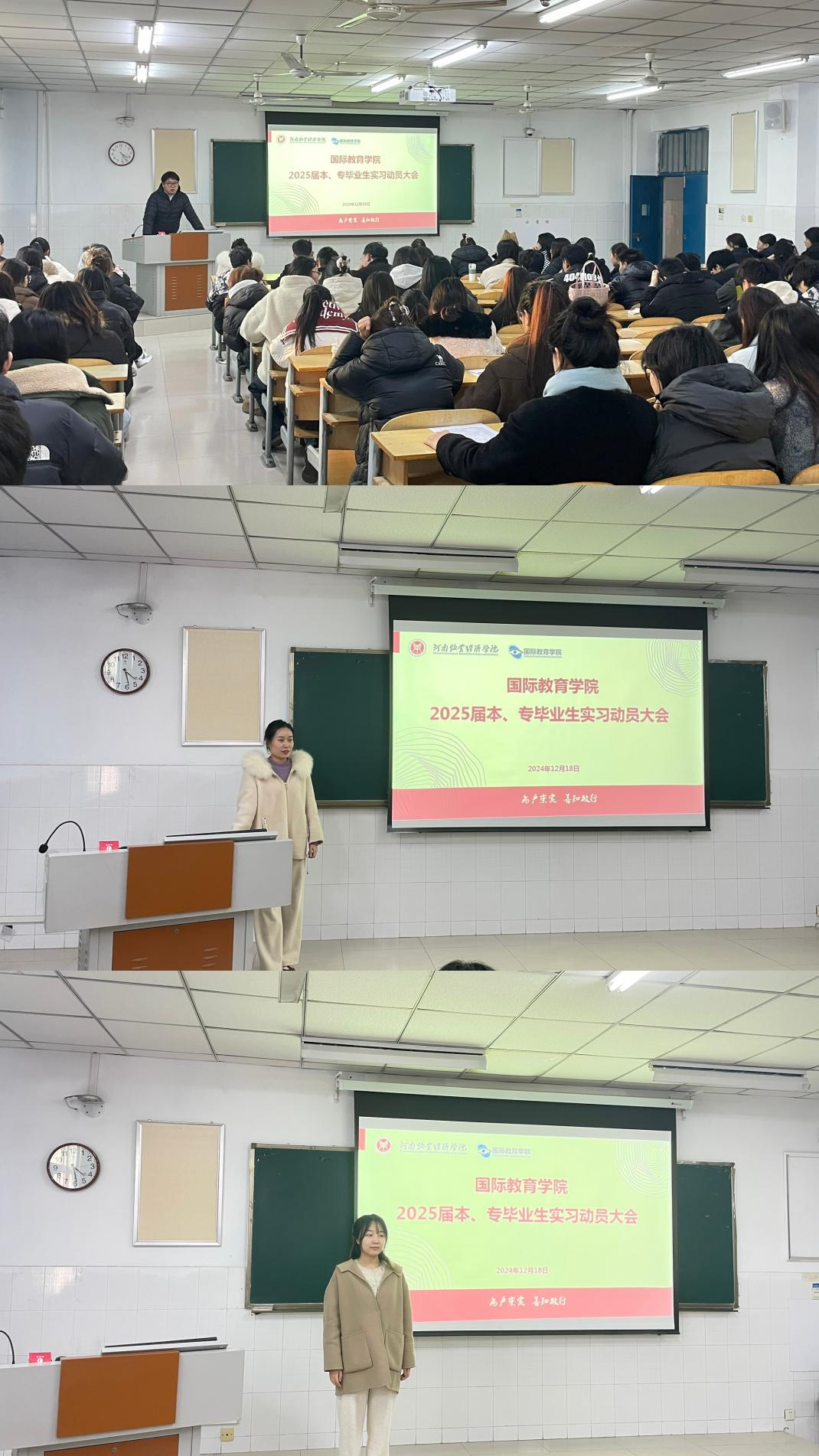 为增强实践教学能力,加大力度宣传就业,满足应用型人才培养需求,充分发挥专业实习对就业的促进作用,引导学生树立正确的就业观,提前进入就业求职状态,12月13日至18日,国际教育学院组织毕业班辅导员先后召开2025届买球官方网站本、专科毕业生实习大会,2025届全体毕业生同学近1547人参加。