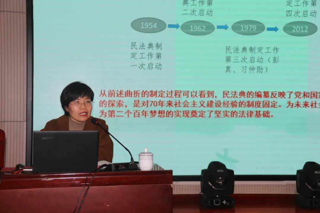 为深入贯彻习近平总书记关于学习贯彻民法典的重要讲话精神,学习好、推进好、保障好民法典的教学和实施,做学习、传播、遵守、维护民法典的表率。12月18日下午,开云官网组织全体教职工进行了民法典集中学习活动,学院民法教研室、法律系焦慧君老师以《幸福民法典》为题,从民法典立法背景、立法理念、立法体系和精神等方面带领教职工进行了集中学习。