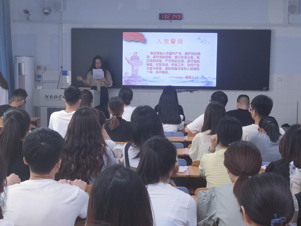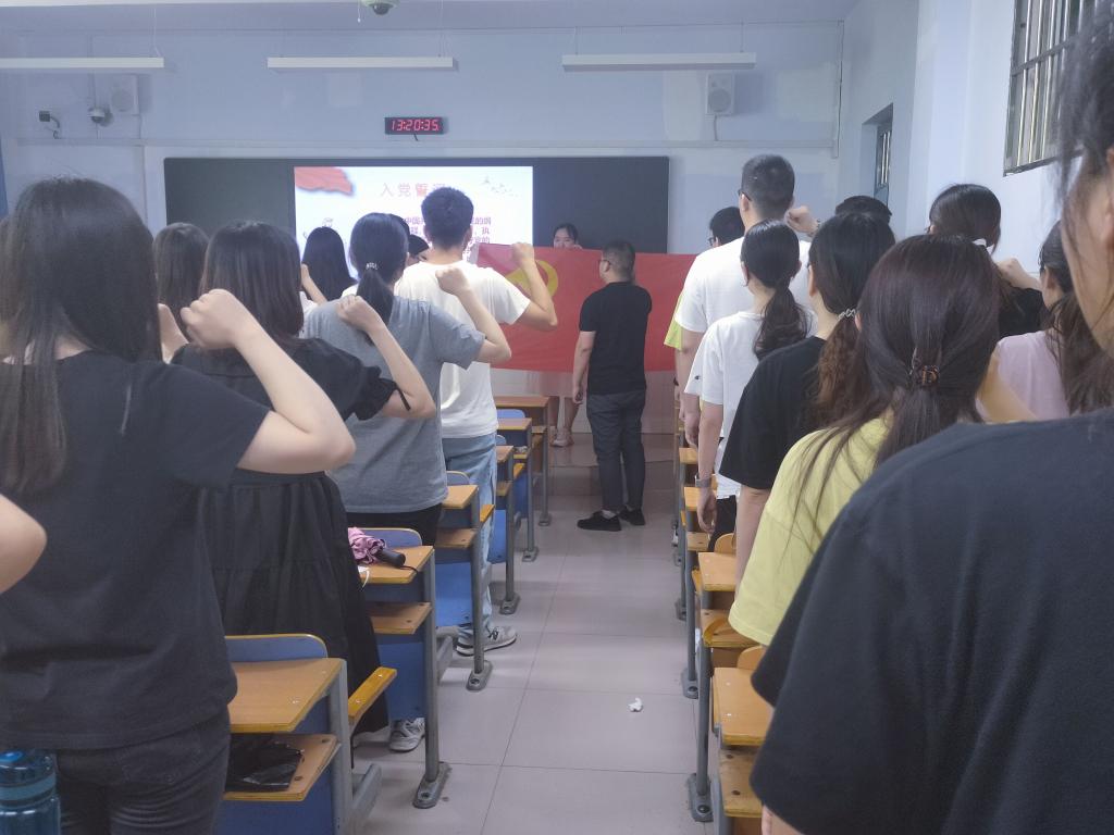 买球官方网站于2021年6月2日中午12:30在A103教室举办了买球官方网站学生第一党支部接受预备党员暨转正大会。会议议题是讨论接收田薇等50名同志为中共预备党员以及讨论杨宇同志转为正式党员。出席本次大会的有买球官方网站学生第一党支部书记侯丁琳、党小组组长何季霖和组织委员姚铭。