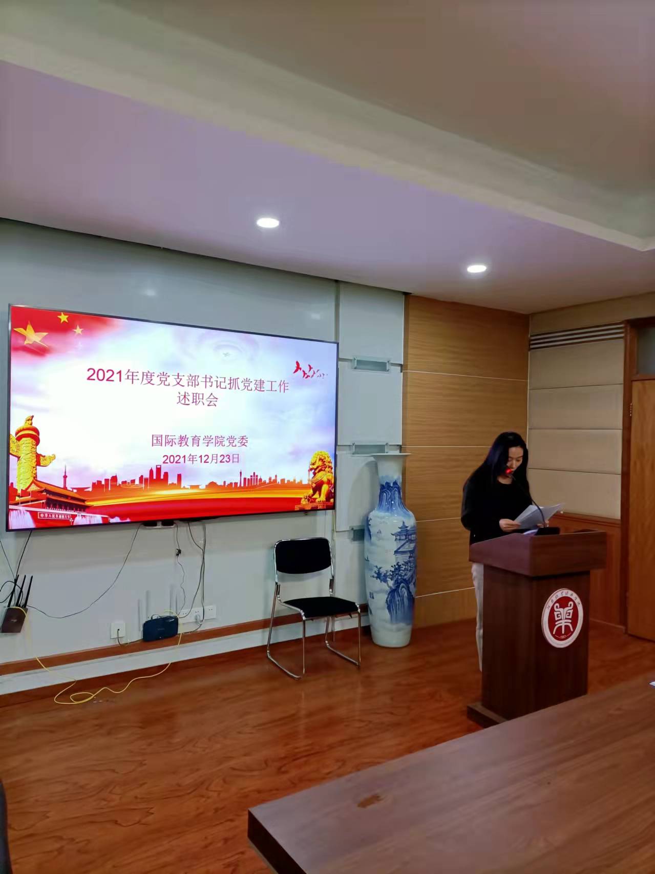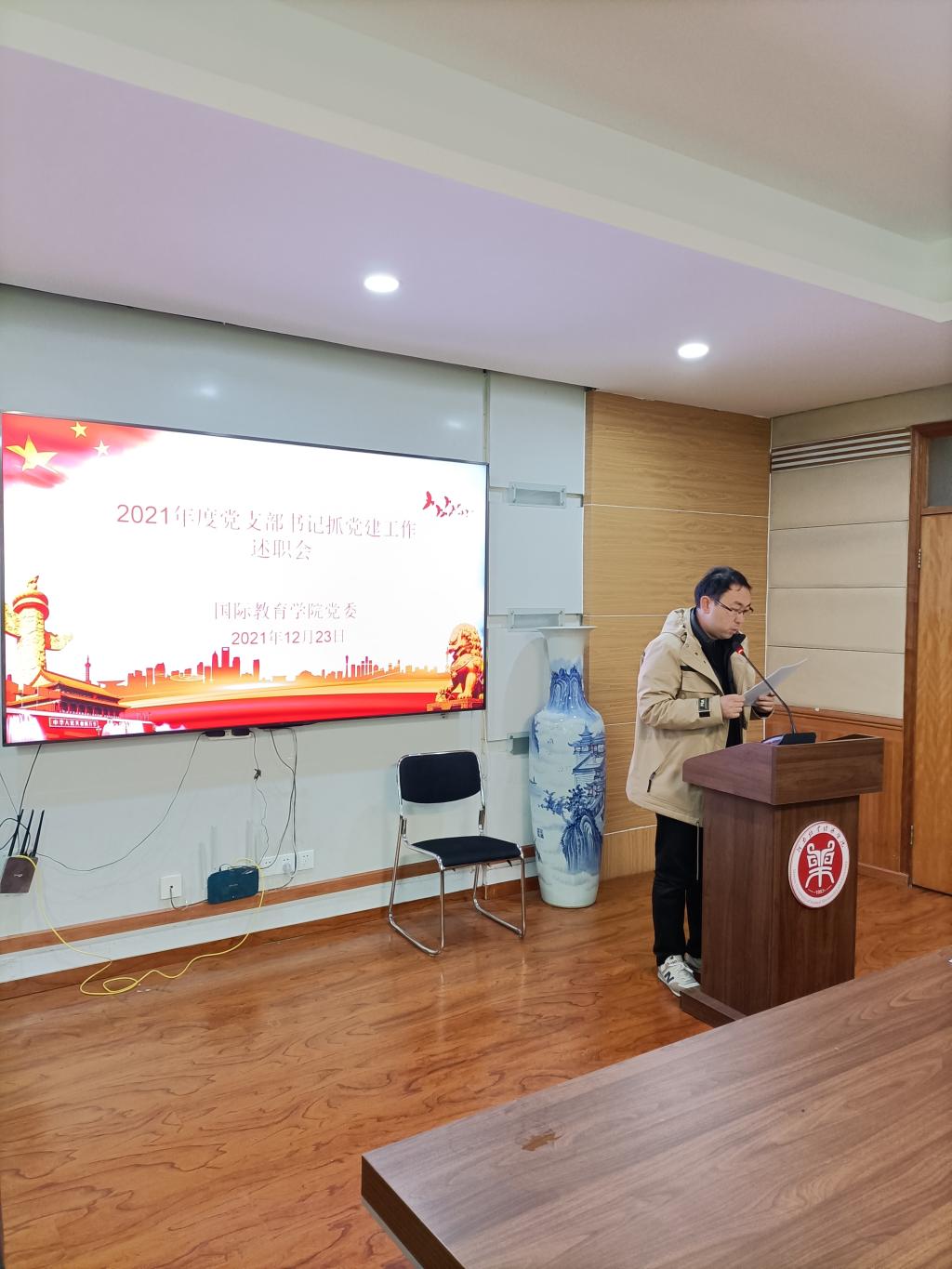 12月23日上午,买球官方网站在教学办公楼113会议室召开2021年度党支部书记抓党建工作述职评议会。学院全体教工党员、部分学生党员代表参加会议。会议由院党委书记贾江主持。