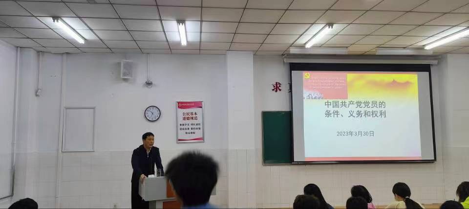 为严格党员发展工作程序,强化入党积极分子对党员条件、义务和权利等知识的了解,3月30日晚,买球官方网站2023年第一期入党积极分子培训班第四讲《中国共产党党员的条件、义务和权利》专题党课在英才校区W210教室举行。本次党课由学院党政办公室主任刘超主讲。