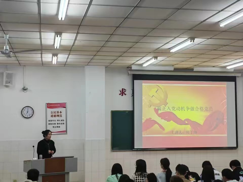 为严格党员发展工作程序,提升入党积极分子们的思想觉悟和理论素养,3月31日晚,买球官方网站2023年第一期入党积极分子培训班第六讲《端正入党动机 争做合格党员》专题党课在英才校区W210教室举行。本次党课由学院团委副书记、学生第一党支部书记侯丁琳主讲。