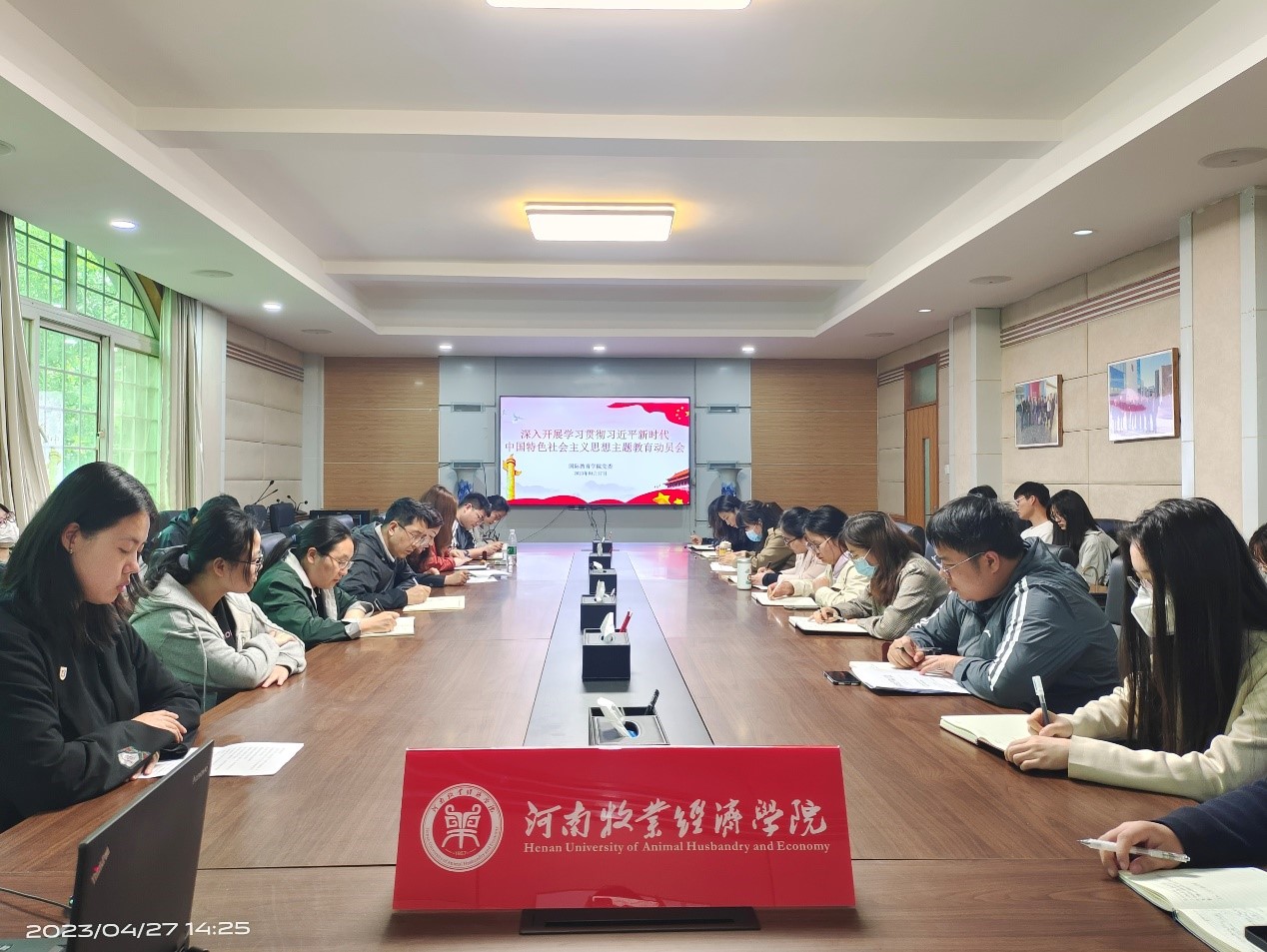 4月27日下午,买球官方网站在教学办公楼113会议室召开深入开展学习贯彻习近平新时代中国特色社会主义思想主题教育动员会。院党委书记贾江主持会议并作动员讲话。全体教工党员、部分学生党员代表参加会议。