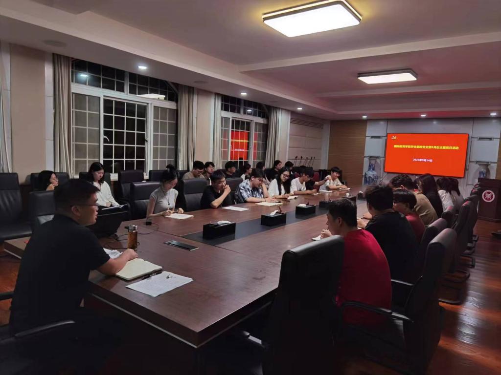 9月14日晚,买球官方网站学生第四党支部在教学办公楼113会议室开展9月份主题党日活动。党支部全体党员参加会议,会议由党支部书记何季霖主持。