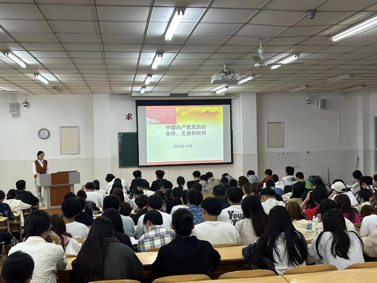 为严格党员发展工作程序,强化入党积极分子对党员条件、权利和义务等知识的了解,10月18日中午,买球官方网站2023年第二期入党积极分子培训班第三讲《党员的条件权利和义务》专题党课在英才校区E209教室举行。本次党课由学院团委书记(学工办主任)张丽主讲。