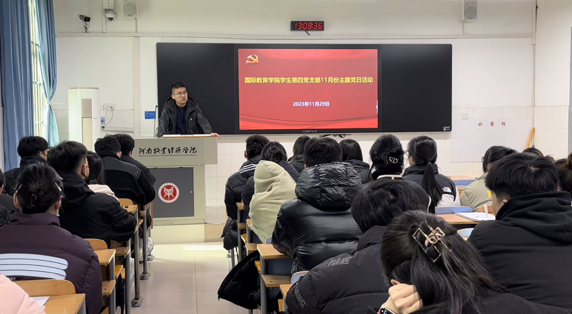 11月29日中午,买球官方网站学生第四党支部在英才校区A107教室开展11月份主题党日活动。党支部全体党员参加会议,会议由党支部书记何季霖主持。