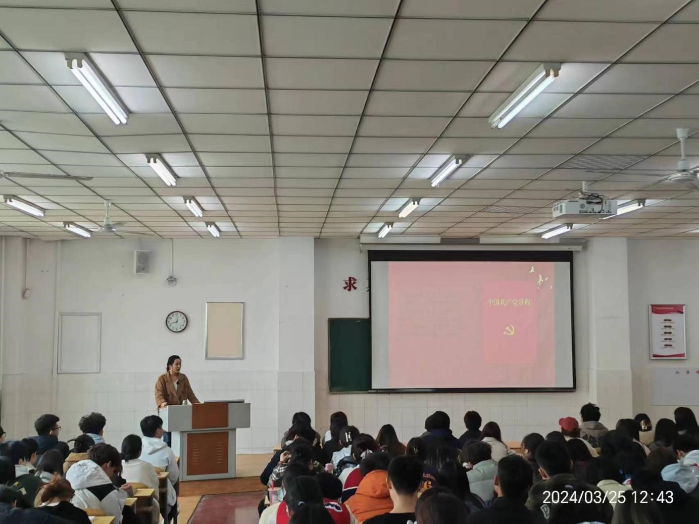 为进一步端正广大入党积极分子的入党动机,切实做好入党积极分子的培训教育工作,3月25日中午,买球官方网站2024年第一期入党积极分子培训班第五讲《党员的条件权利和义务》专题党课在英才校区W210教室举行。本次党课由学院团委副书记、学生第一党支部书记侯丁琳主讲。