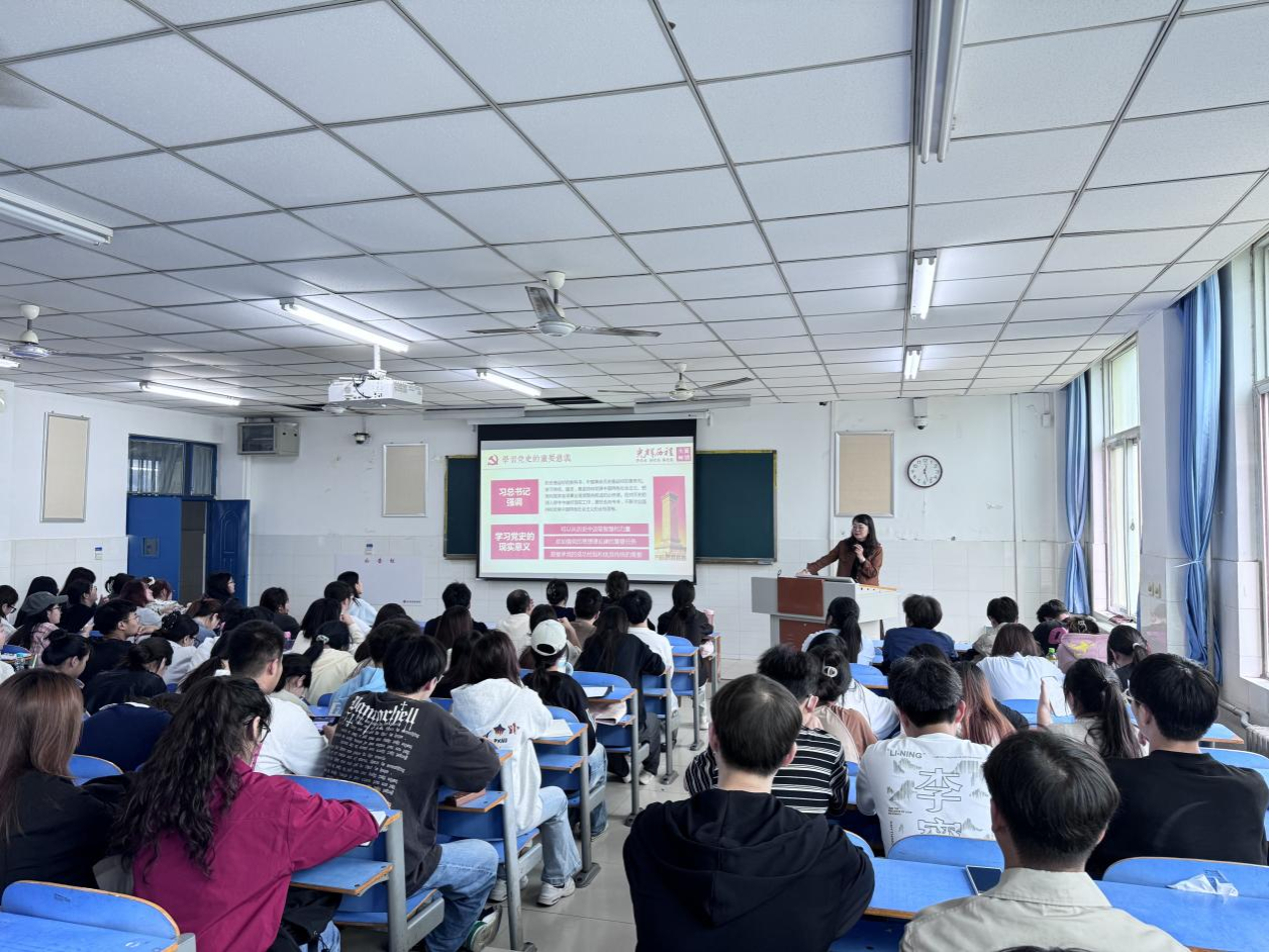 党课中,焦亚转从“党史发展脉络及学习意义”、“新民主主义革命时期”、“社会主义革命和建设时期”、 “改革开放和社会主义现代化建设时期”四个方面展开了具体讲解。她运用丰富的史料、生动的事例、翔实的数据,深刻阐述了习近平总书记关于学习党的历史的重要论述,阐明了学习党史的重要意义,展现了中国共产党从无到有、从弱到强的百年光辉历程。她指出,认真学习党史既是一次把握规律、把握未来的理论学习,也是一次坚定信仰、坚定方向的党性教育。通过学习,必将增强我们对党的感情认同、理论认同、政治认同;作为青年大学生要进一步坚定理想信念,继承优良革命传统精神,厚植爱党之情,感党恩、听党话、坚定不移跟党走,从百年党史中汲取勇往直前的奋进力量。