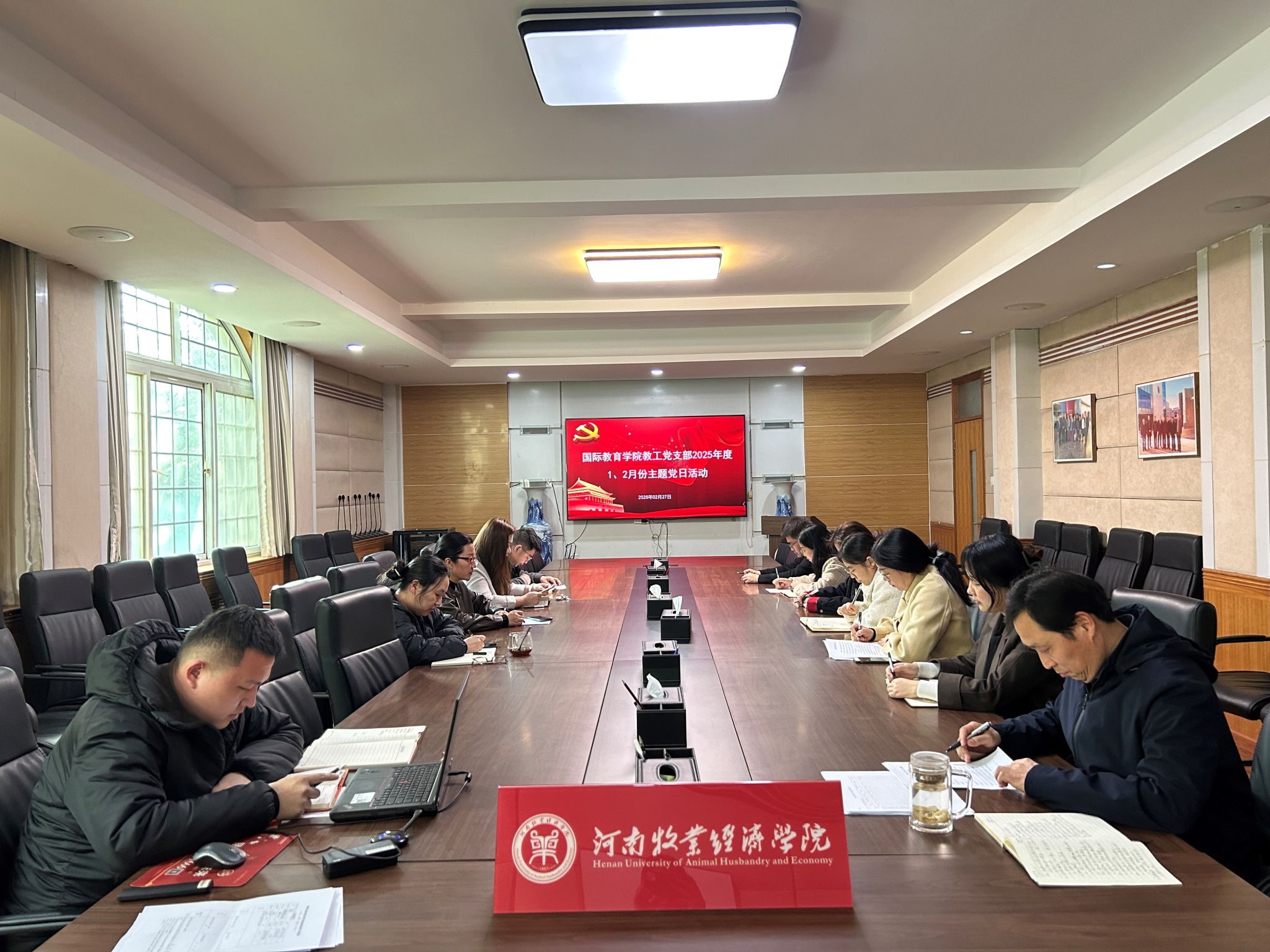 2月27日下午,买球官方网站教工党支部在学院113会议室召开2025年度1、2月份主题党日活动,支部书记李江红主持会议,支部全体党员参加会议。